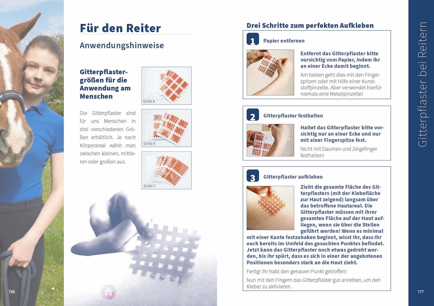 Es zeigt, wie Gitterpflaster auch beim Menschen eingesetzt werden können. Muskelverspannungen, Schmerzen oder alltägliche Beschwerden lassen sich so ebenfalls sanft und nebenwirkungsfrei lindern.